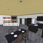 W salonie (otwarta kuchnia z salonem, garderoba, toaleta, sypialnia, biuro) możesz zmienić strój i spać. Również w biurze na komputerze możesz wybrać kolor wykończenia budynku.