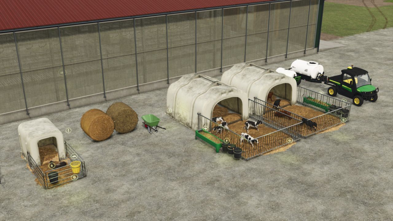 Dodatkowo w pakiecie znajdują się także niefunkcjonalne, dekoracyjne wersje każdej z opcji chat dla cieląt, którymi możesz udekorować swoją farmę, jeśli nie lubisz zajmować się cielętami i zamiast tego możesz woleć wykorzystać je jako dekorację.