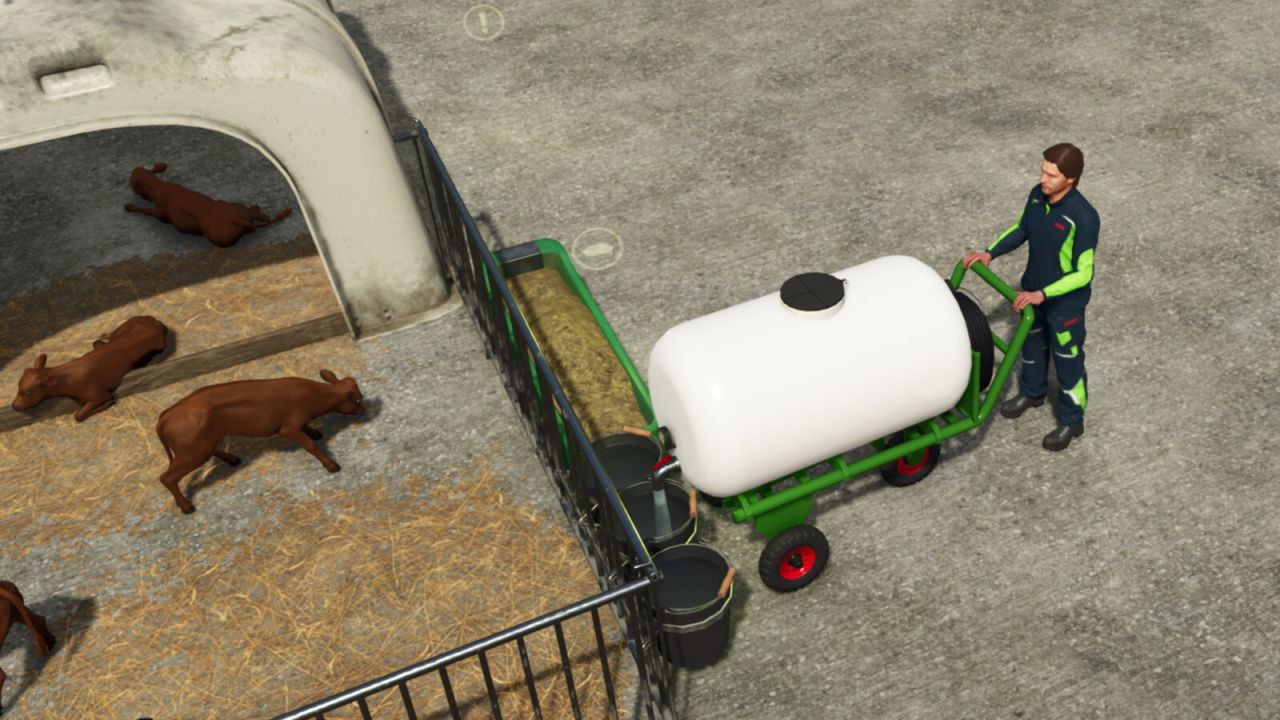 Zaleca się używanie moda „Więcej zagród dla zwierząt (64)” (autorstwa modelleicher / Farming Agency) z tym modem, dzięki któremu będziesz mógł budować wiele domków dla cieląt.