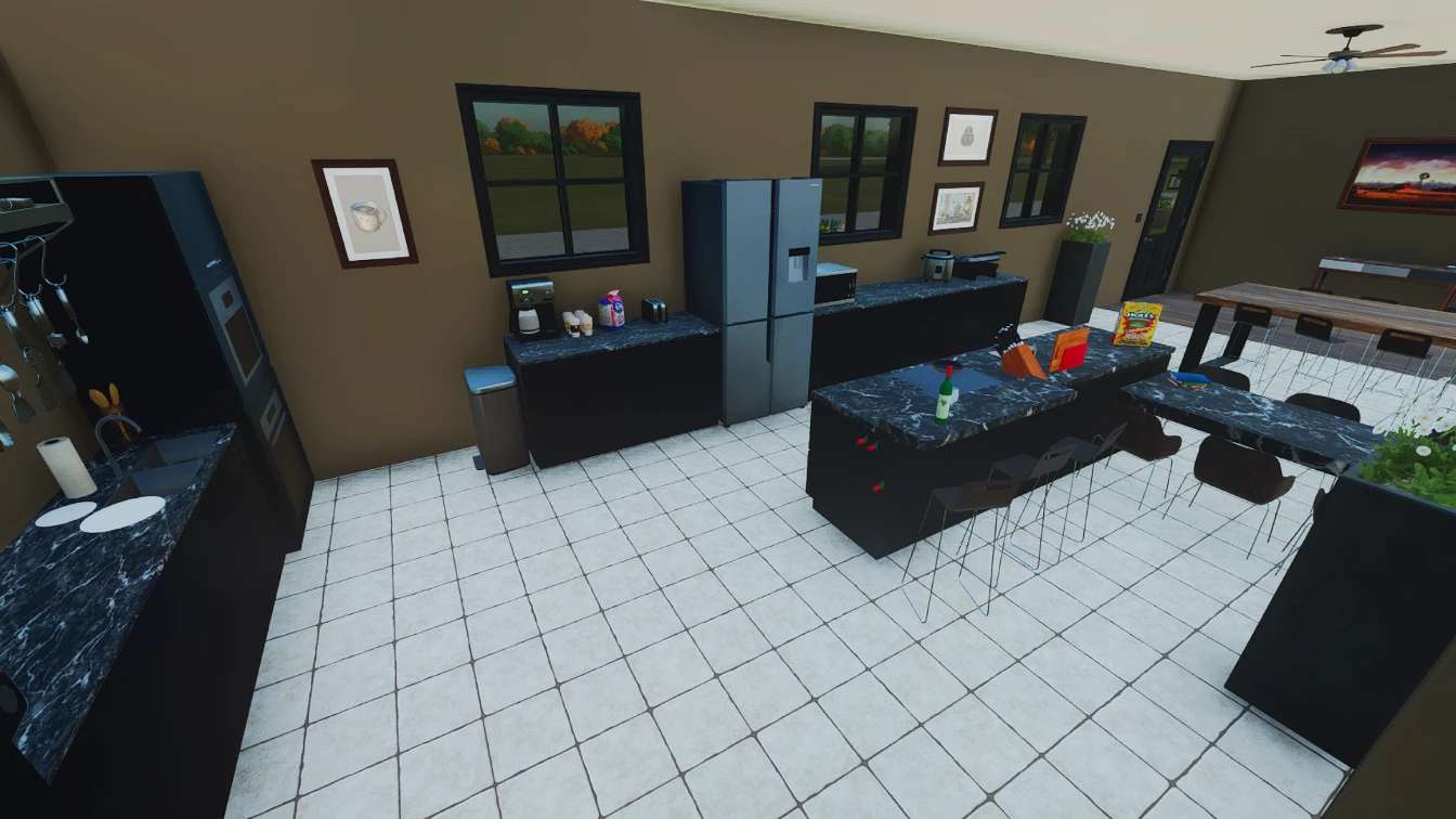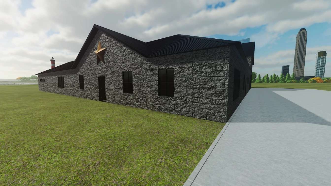 To dom wiejski, wykorzystywany do gry w RP, spania i przebierania się. Garaż może służyć do przechowywania pojazdów i/lub sprzętu. Dom składa się z 3 sypialni, 3 łazienek, kuchni z jadalnią, pralni, salonu, biura, pokoju gier, wygodnego ganku z tyłu oraz przylegającego garażu/warsztatu o wymiarach 75×50. (Windy nie są wliczone w cenę budynku. Aby zademonstrować, jak można je wykorzystać, użyłem wind z możliwością montażu).