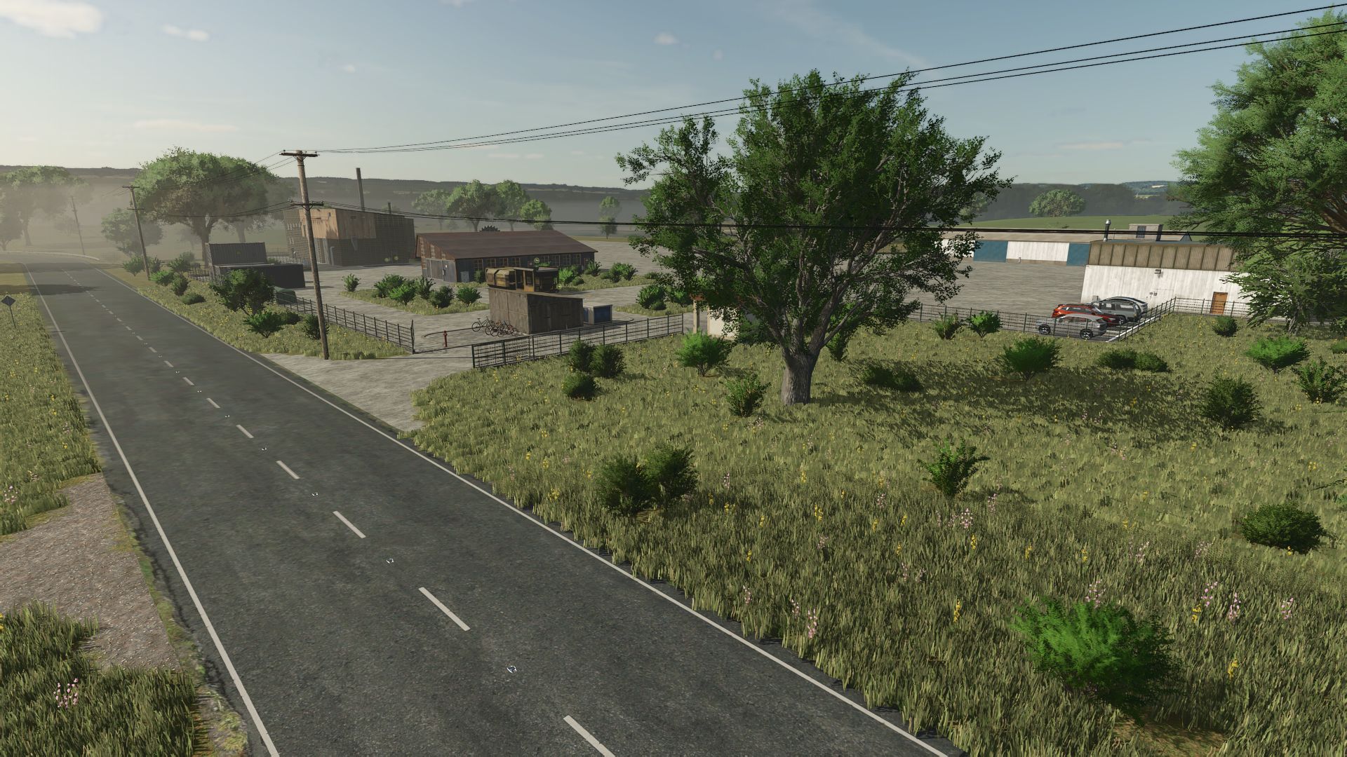 Fabrykę młyna zbożowego umieściłem obok punktu sprzedaży zboża. Punkt produkcyjny i stacja sprzedaży znajdują się przed wejściem, przed płaskim, długim budynkiem, obszar palet znajduje się na lewym podwórku.