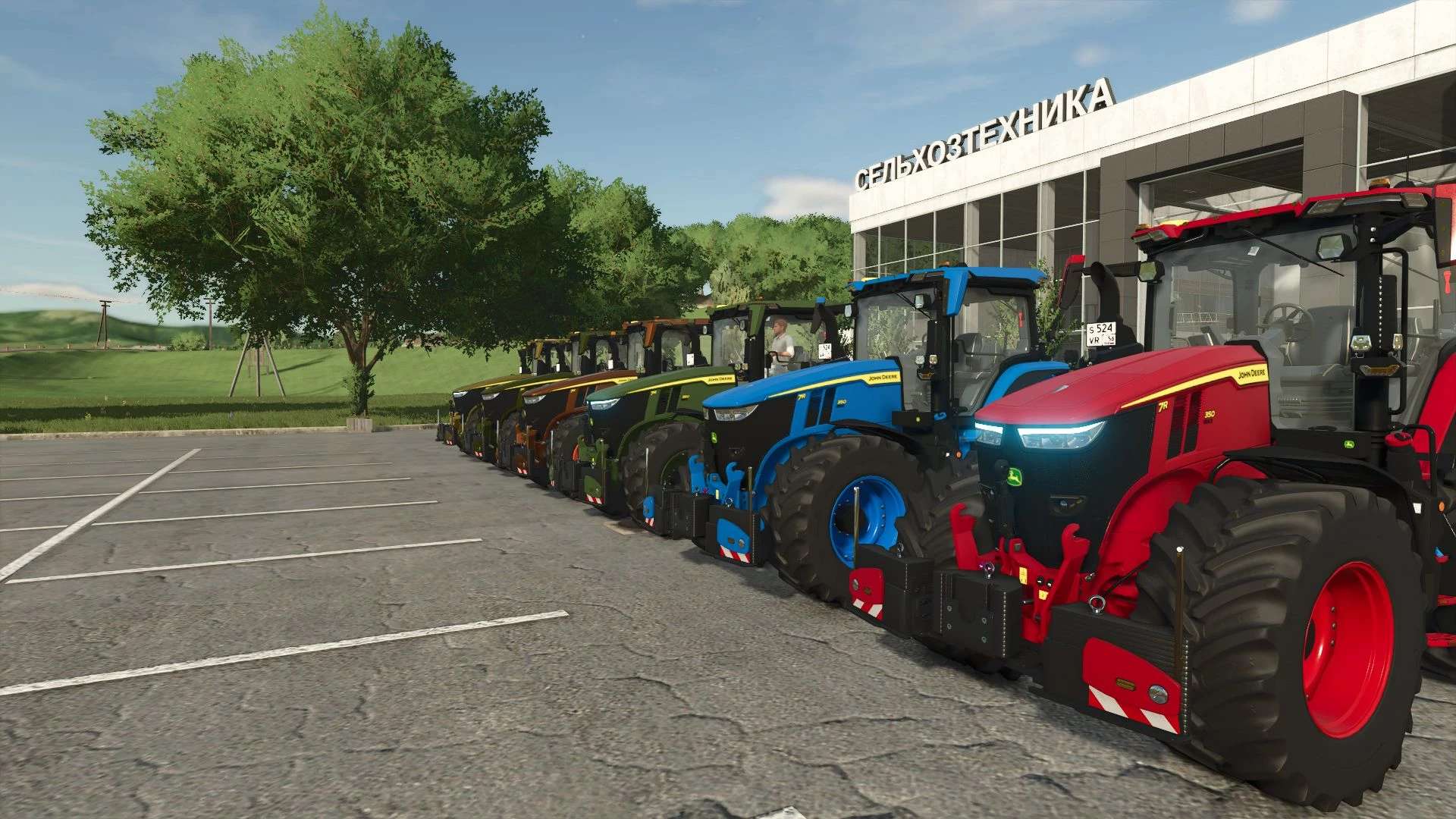 Domyślny traktor przerobiony na modyfikację. Seria 7R. Duży wybór kolorów traktorów i kół.