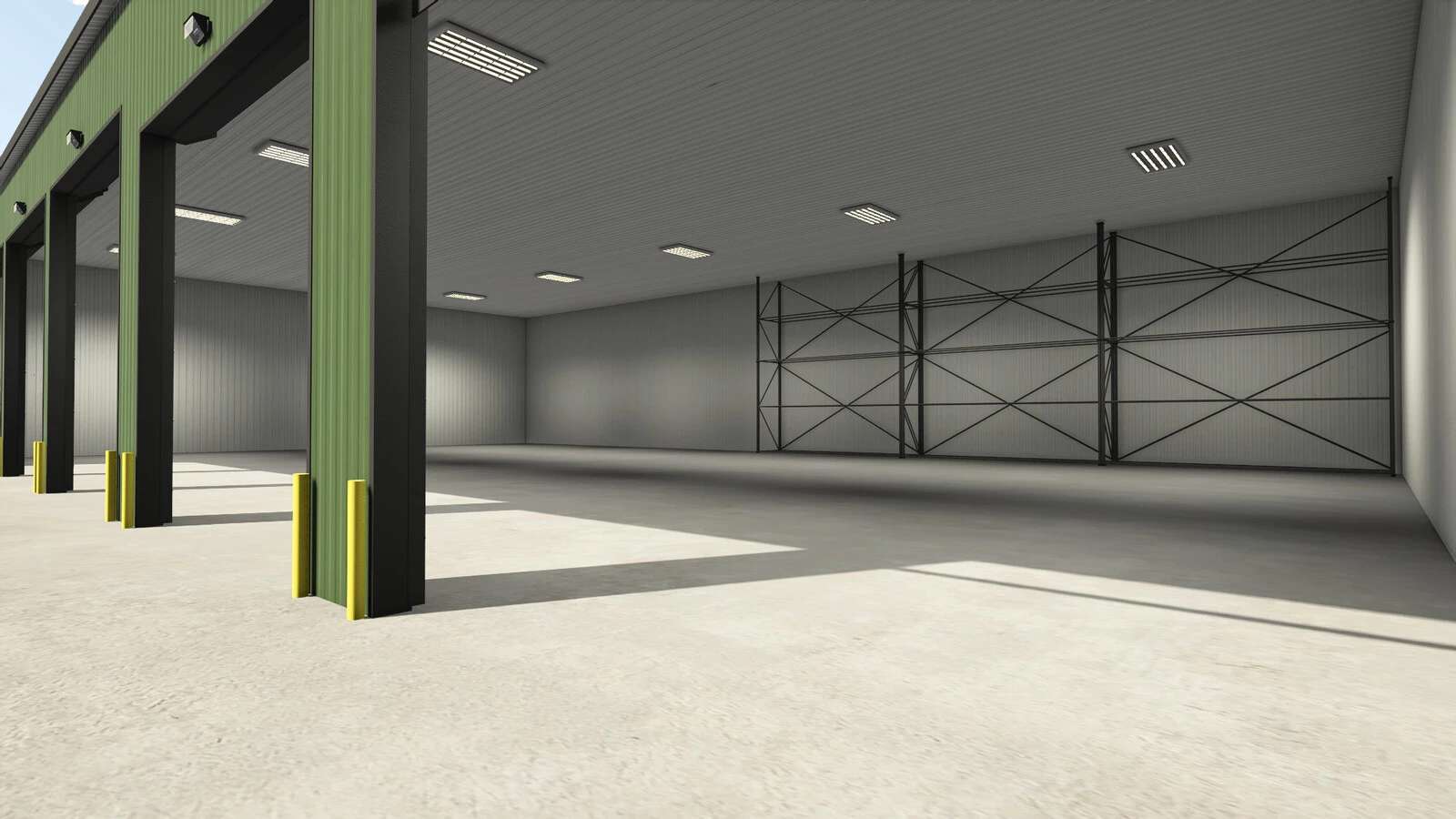 Garaż, w którym możesz przechowywać pojazdy i uprawy. Wewnątrz możesz używać półek na palety lub BigBag.