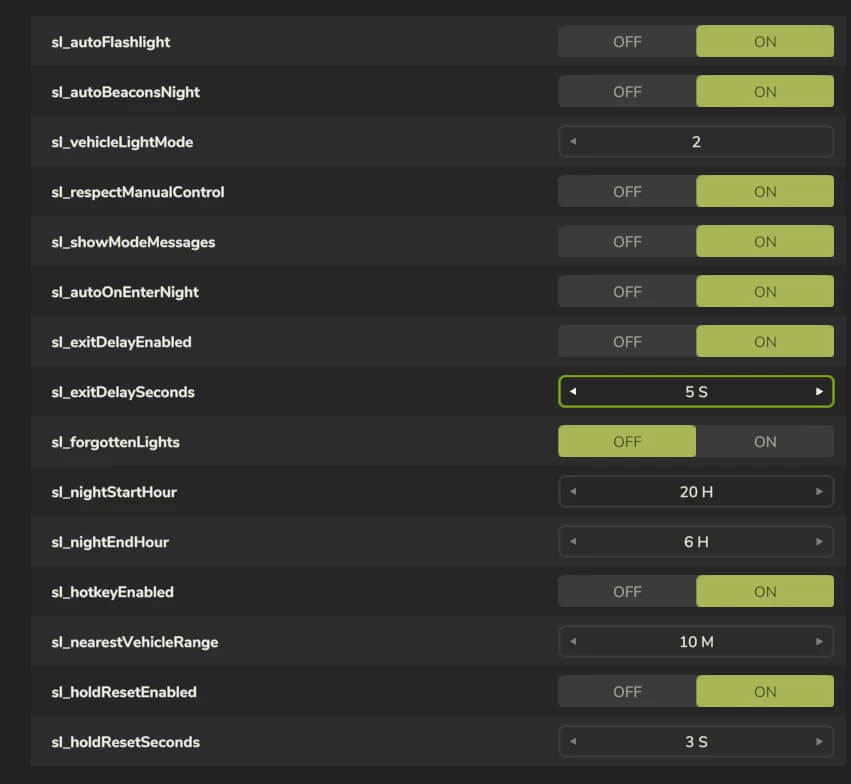 – Reflektory Twojego pojazdu włączają się/wyłączają automatycznie w zależności od pory dnia (dzień/noc). Czas włączania/wyłączania można skonfigurować w ustawieniach (Ustawienia ogólne);