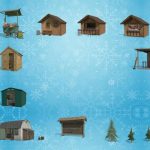 Pakiet zawiera stanowiska sprzedaży i przedmioty dekoracyjne do stworzenia jarmarku bożonarodzeniowego.