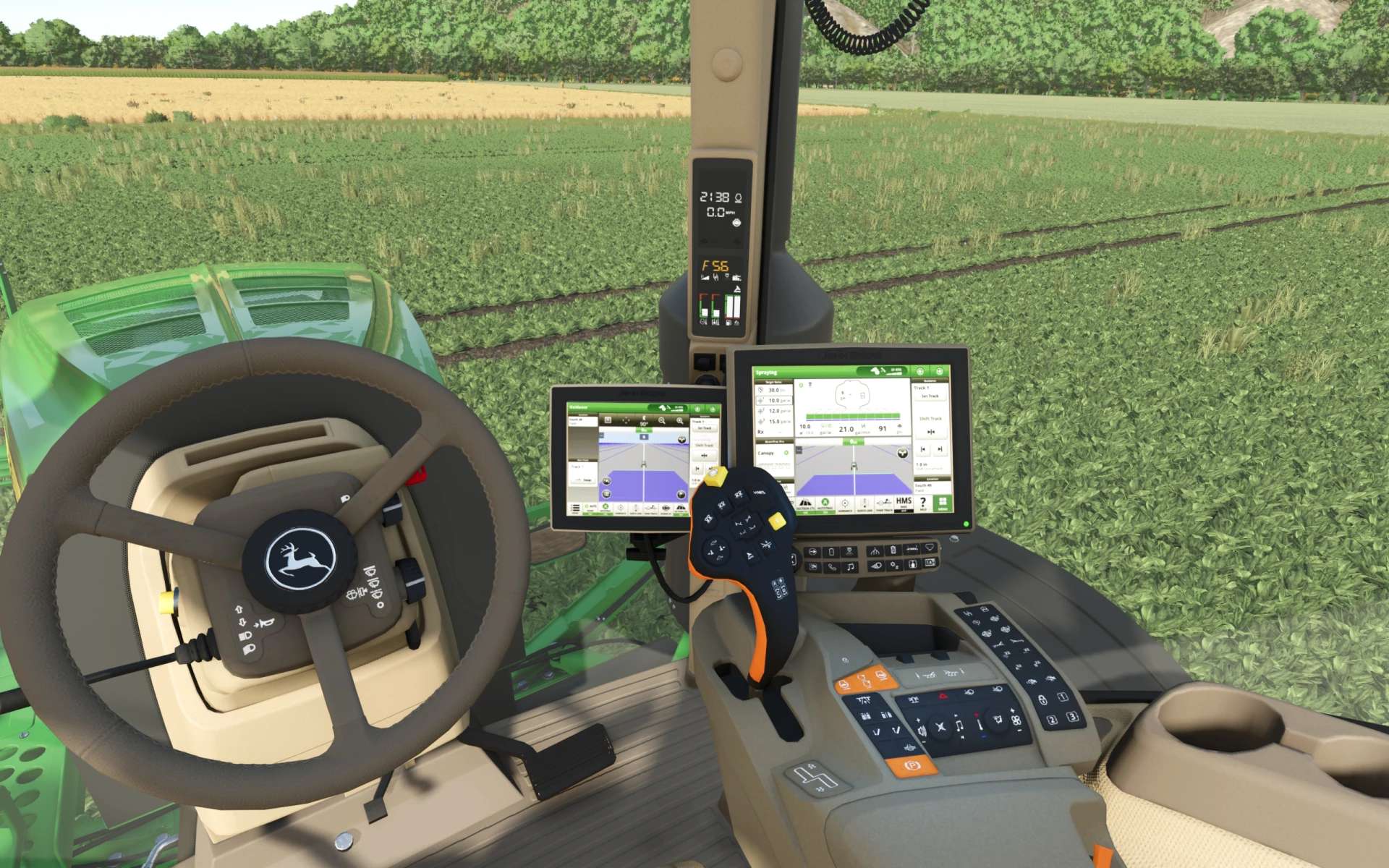 Dodano niestandardowe ekrany wyświetlacza, które zmieniają się w zależności od tego, czy jesteś podłączony do niczego, opryskiwacza czy rozsiewacza. Te ekrany zostały pobrane z internetowego symulatora Deere dla dokładności.
