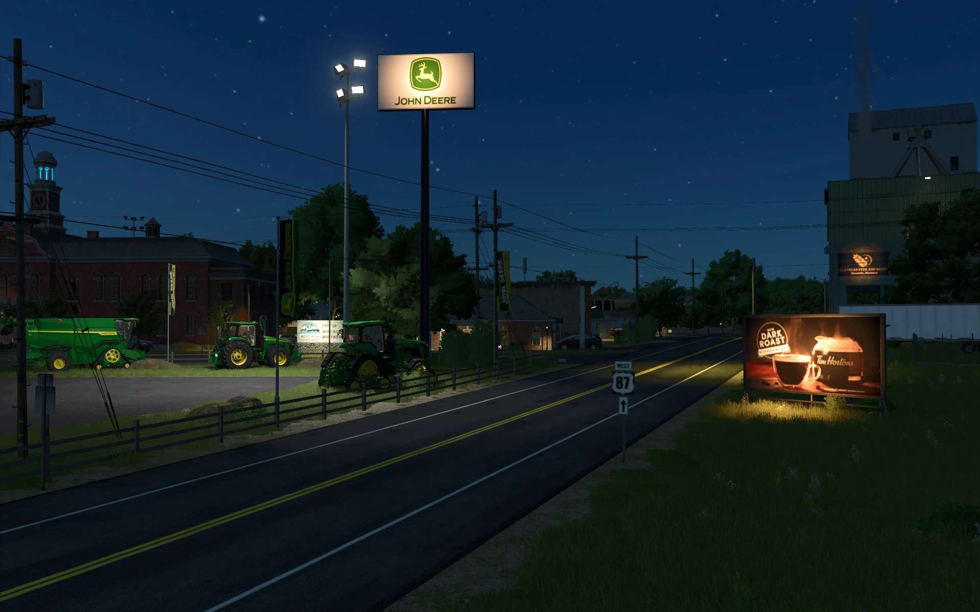 Salon sprzedaży sprzętu demonstracyjnego John Deere, w którym gracze mogą wypożyczyć sprzęt.