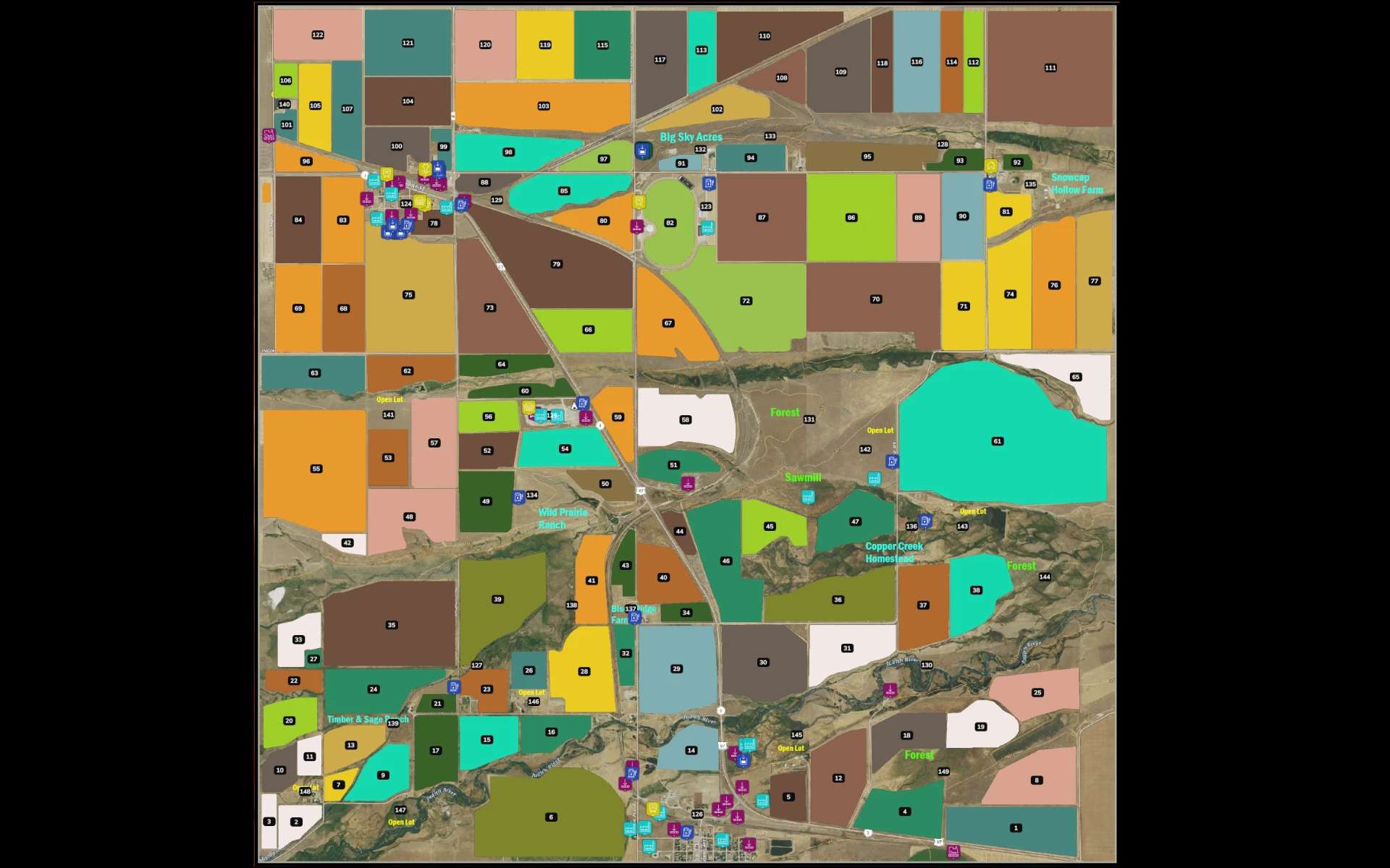 Ta mapa 4x jest inspirowana rozległymi, otwartymi krajobrazami centralnej Montany w USA, z silnym naciskiem na rolnictwo. Zawiera rozległe pola uprawne, pagórkowate równiny i realistyczny teren