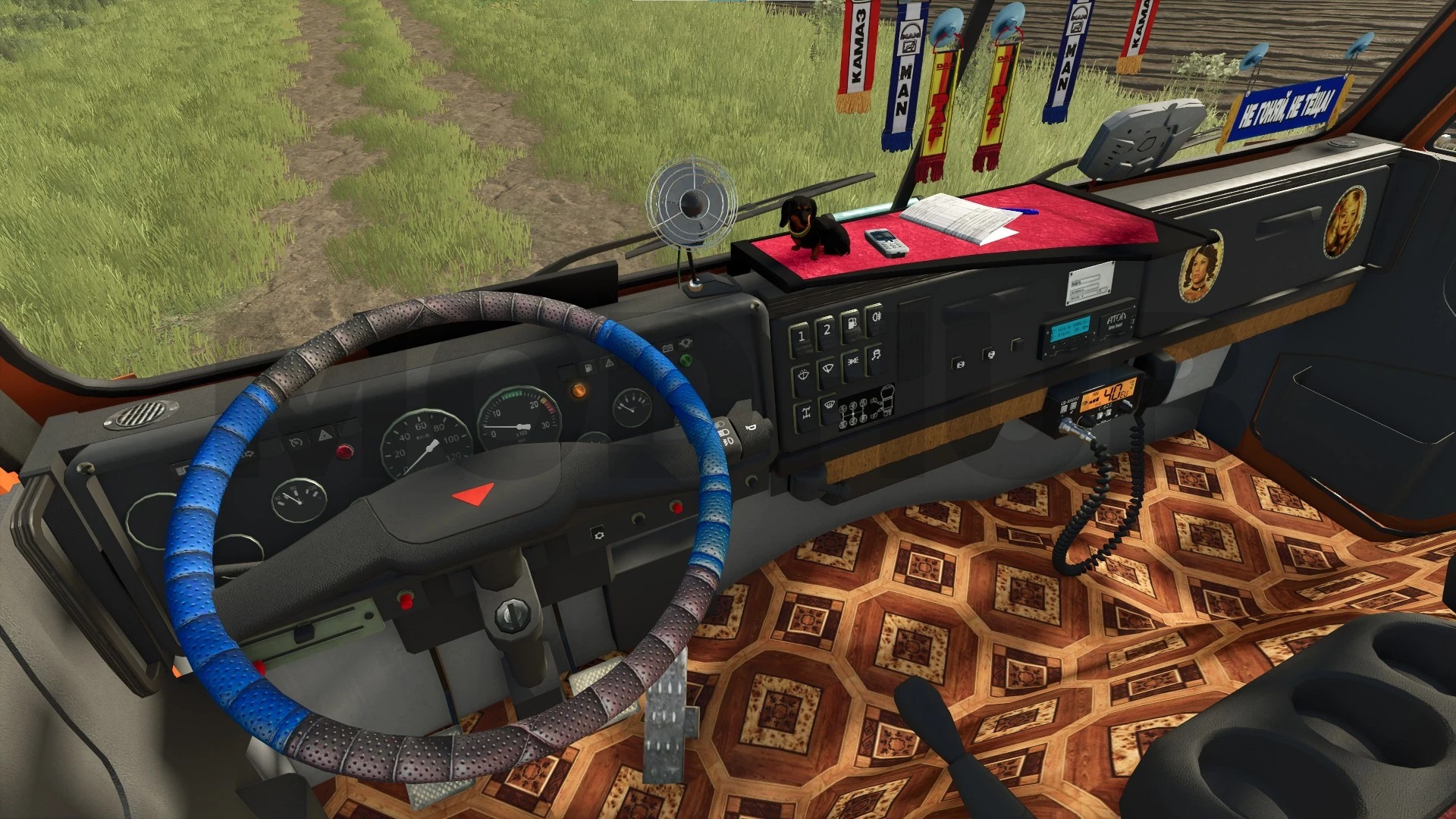 Animowana deska rozdzielcza, pedały, dźwignia zmiany biegów;
