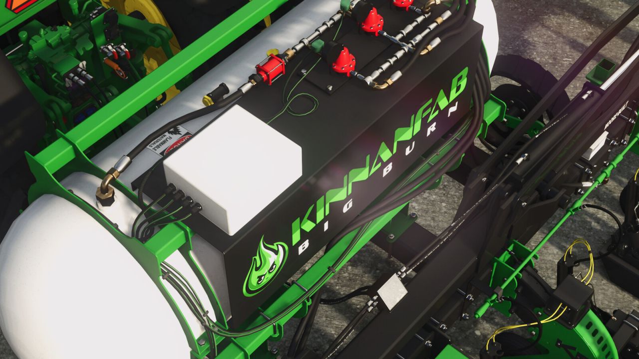 KinnanFAB 'Big Burn to najmocniejszy wygaszacz chwastów na rynku, zaprojektowany z myślą o szybkości, precyzji i trwałości. Dzięki mocy 1,5 miliona BTU na rząd, zapewnia szybsze tempo pracy, bardziej równomierne zabijanie chwastów oraz wszechstronność, umożliwiającą obsługę różnych wysokości upraw, faz wzrostu i warunków polowych. Każdy rząd jest wyposażony w podwójne palniki i niezależne zapalniki, co zapewnia stały płomień, mniej przepaleń i niezawodną wydajność w najtrudniejszych warunkach. Zaprojektowany z myślą o długiej żywotności, Big Burn charakteryzuje się wykończeniem klasy przemysłowej, oponami pełnymi odpornymi na przebicia i w pełni smarowalnymi tulejami, dzięki czemu pracuje tak ciężko, jak Ty, sezon po sezonie.