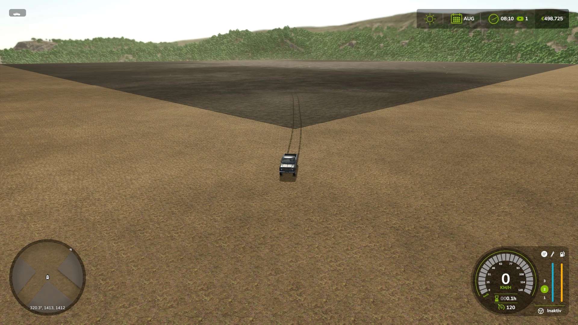 Warsztat samochodowy otoczony jest teksturą trawy. Punkt startowy oznaczono szarym asfaltem. Tło mapy i granice mapy są w pełni zaimplementowane.