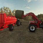 Ma to przypominać wygląd tych ciągników w USA i Kanadzie, na przykład opony Goodyear Dynatorque II jako standard w fabryce oraz bardziej kompaktowe/mocne ładowacze czołowe. W zestawie znajdują się zarówno ładowacze MF 838, jak i MF 232. Model 838 jest przeznaczony do ciągników 375-393, a model 232 do ciągników 360 i 362. Model 232 to w szczególności przeprojektowana i zmodyfikowana wersja ładowacza Case IH Mount-O-Matic, ponieważ jest bardzo podobny w konstrukcji i działa całkiem dobrze. Ładowarka 838 jest bardziej zbliżona do rzeczywistego odpowiednika, ale zawiera również kilka elementów z modelu IH. Modele 396 i 399 są przeznaczone do ładowacza Great Bend 760. W zestawie znajdują się również dwa czerwone wiadra i włócznia do bel do ładowarek 838 i 232 (z pakietu MP Shovels Pack, dzięki uprzejmości HJ modding).