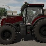 Cześć, oto ciągnik McCormick z roku 2025 w kolorze bordowo-czerwonym, z czarnymi felgami, flagą bretońską i diodami LED na osłonie chłodnicy.