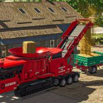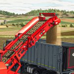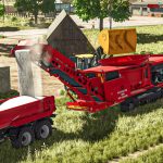 Taśmociąg niszczarki umożliwi wyładowanie rozdrobnionych produktów do przyczepy lub bezpośrednio na ziemię, korzystając z komendy „Rozładuj tutaj” w grze.