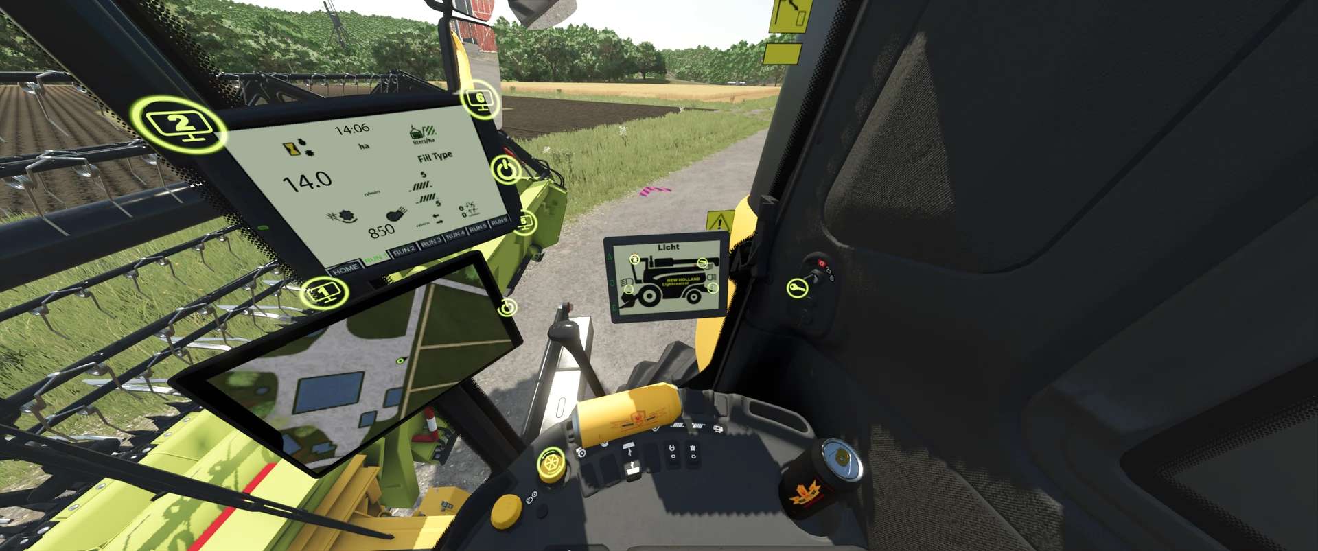 – Rozdrabniacz słomy/kos słomy (tylko animacja; aby przełączać się między kosiarką a cięciem, należy wykonać tę czynność w zwykły sposób w pojeździe)