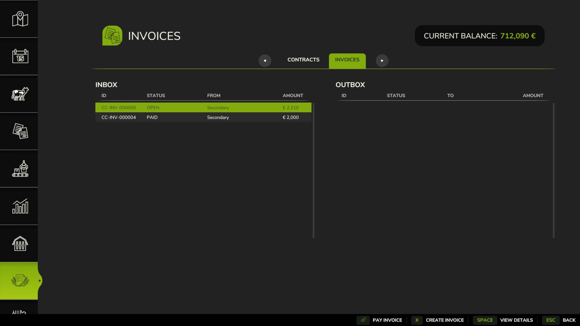 Mod zawiera kompletny system fakturowania, który umożliwia farmom wysyłanie, opłacanie i usuwanie faktur. Po zawarciu umowy, wykonawcy mogą wygenerować fakturę bezpośrednio ze zlecenia i przesłać ją do farmy zlecającej w celu opłacenia, tworząc realistyczny i ustrukturyzowany przepływ pracy. Dostęp do pola jest obsługiwany automatycznie – po zaakceptowaniu umowy, farma zlecająca otrzymuje pozwolenie na pracę na określonym polu powiązanym z tą umową.