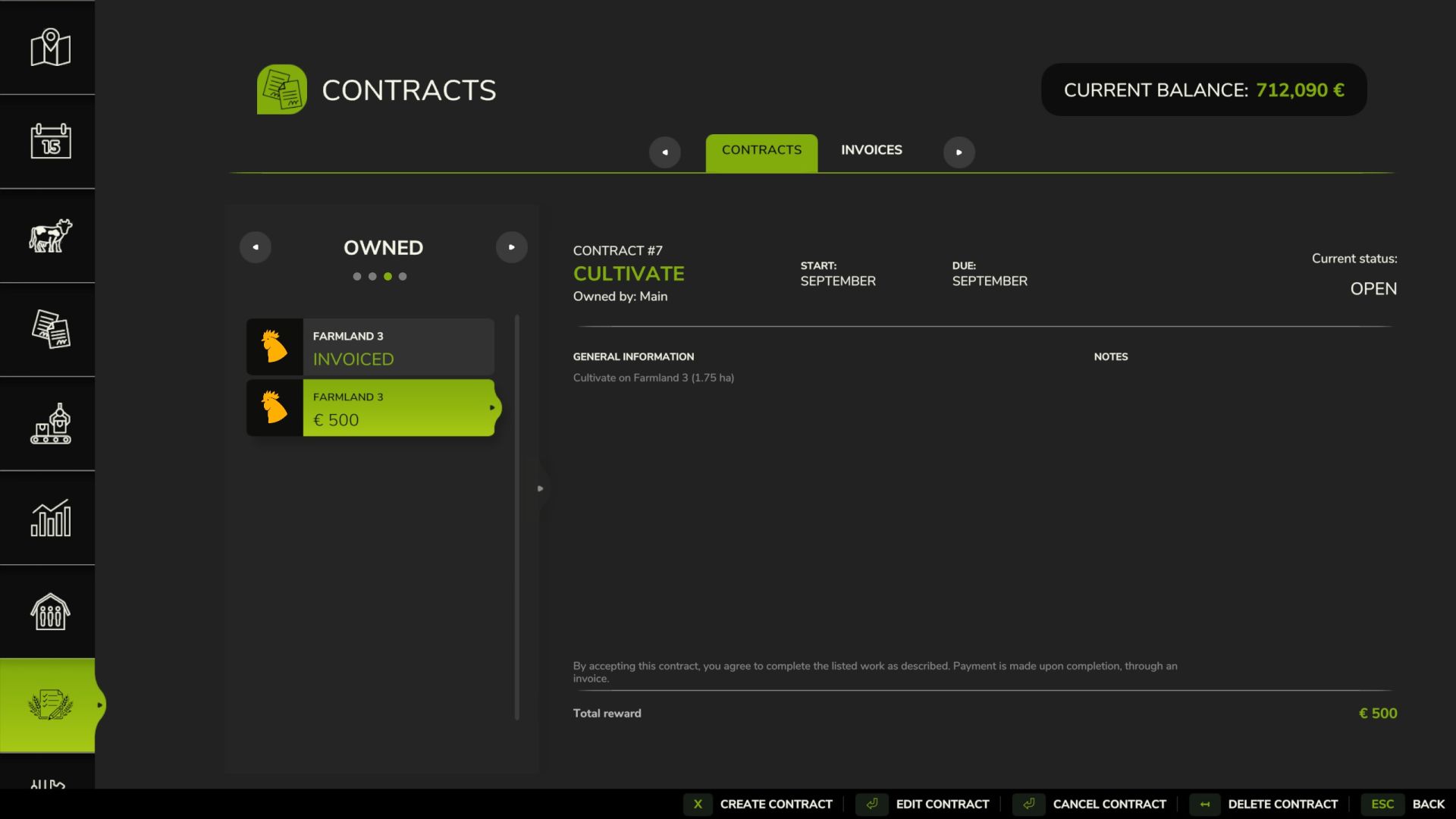 Funkcja „Kontrakty i faktury” umożliwia zaawansowane zawieranie umów między graczami na serwerach wieloosobowych. Niezależnie od tego, czy pomagasz sąsiadowi, czy prowadzisz własną działalność rolniczą, gracze mogą tworzyć, akceptować i zarządzać umowami, aby wykonywać prace polowe dla innych gospodarstw i otrzymywać wynagrodzenie za tę pracę.