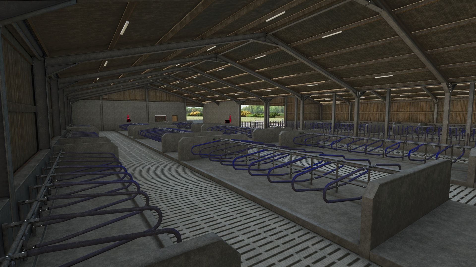 Każda strona ma własny podziemny zbiornik na gnojowicę, opróżniany od tyłu budynku.