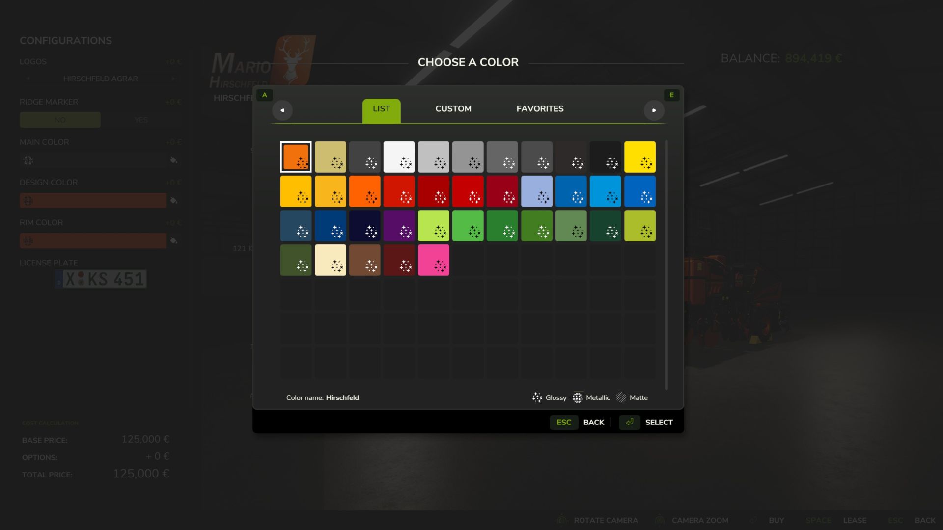 Wybór koloru ram i komponentów