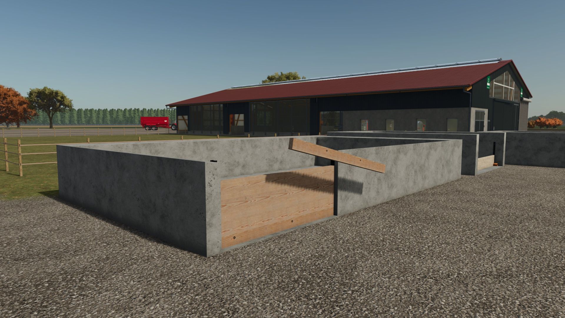 Wszystkie pryzmy obornika mają otwieraną drewnianą ścianę.