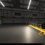 W warsztacie: stare rozdzielacze plonów, stoły do rzepaku, nowe rozdzielacze plonów oraz malowanie Claas, Case, Fendt, John Deere, New Holland (z niebieskimi logotypami) i New Holland (z nowymi logotypami). Naklejki LED DJB.