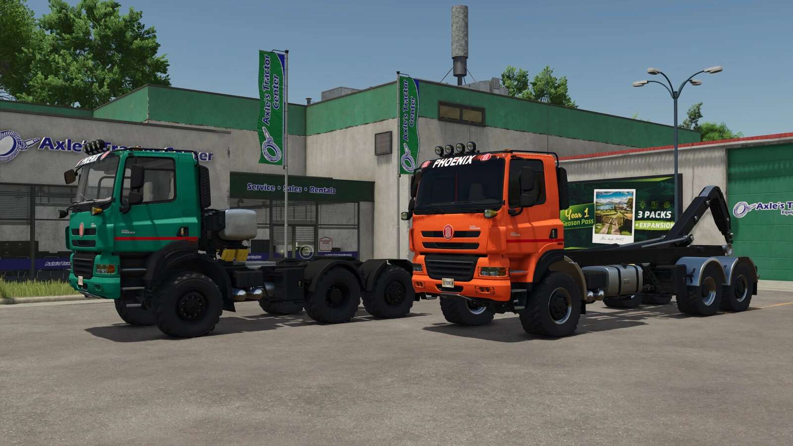 Pakiet zawiera 2 różne wersje ciężarówki Tatra Phoenix: legendarną Tatra Phoenix 6×6 Agro-Truck oraz wersję przeznaczoną do transportu różnych kontenerów i zbiorników, czyli Tatra Phoenix MultiLift.
