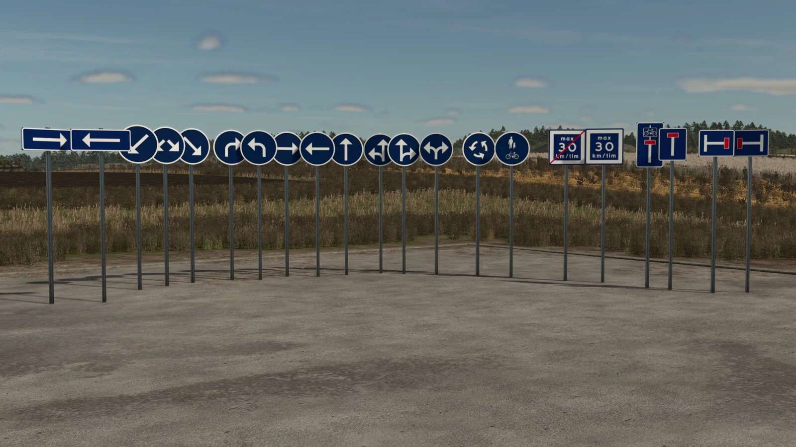 FS25 Pakiet znaków drogowych w języku szwedzkim, możliwy do umieszczenia w wersji 1.0.0.0