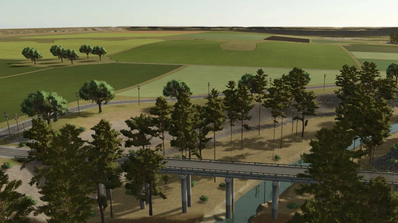 Dalej rozciąga się płaski, otwarty teren, z którego rozciąga się widok na wiele kilometrów. Największą zmianą na tej częściowo fikcyjnej mapie są drzewa, które zostały dodane, aby zapewnić leśnictwo w grze. W rzeczywistości nie mamy drzew.