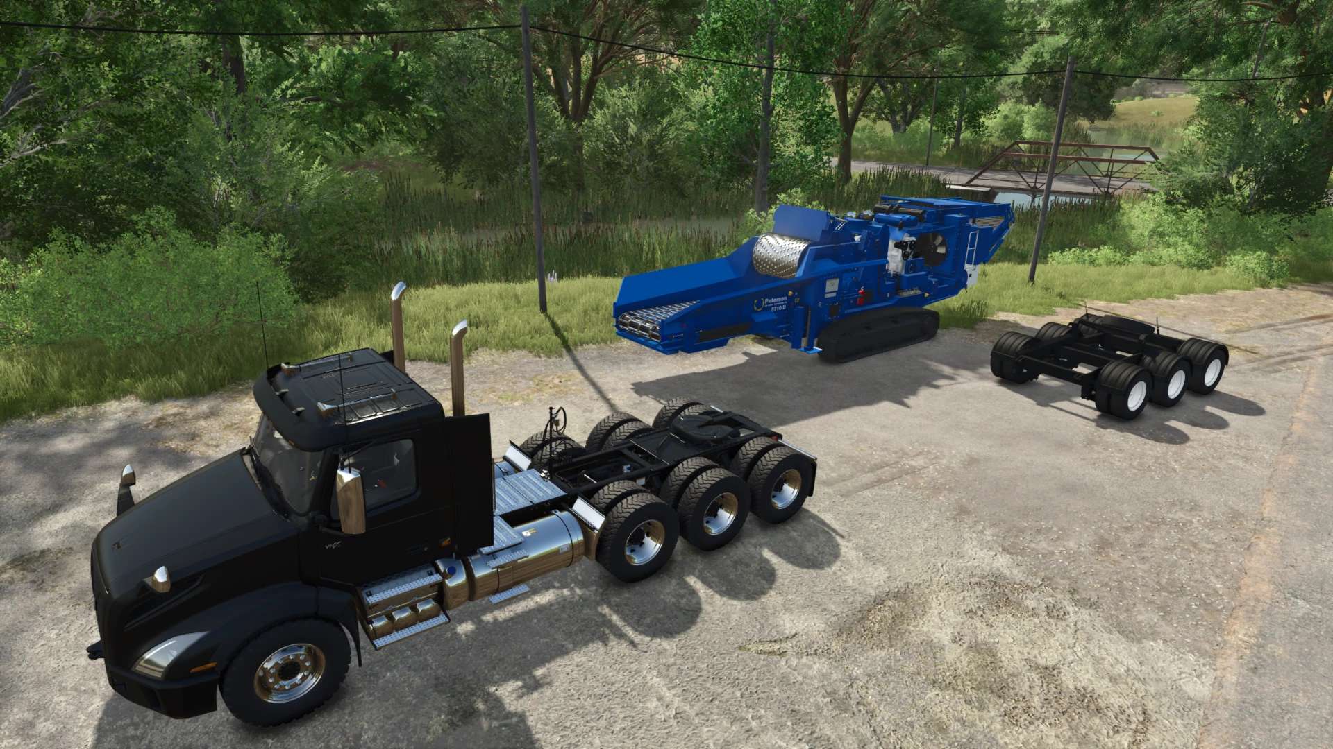 Chipper i wózek. Można transportować jako przyczepę ciężarówką.