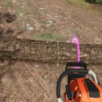 Piła łańcuchowa zatrzyma się we wskazanym miejscu w odległości 20 cm. Kąt nadal należy jednak regulować ręcznie.