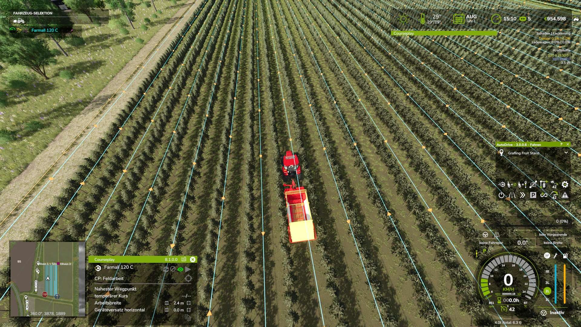 Ponieważ wóz załadowczy jest bardzo wąski, może on bez problemu przejechać przez sady winne i oliwne, zbierając kamienie.