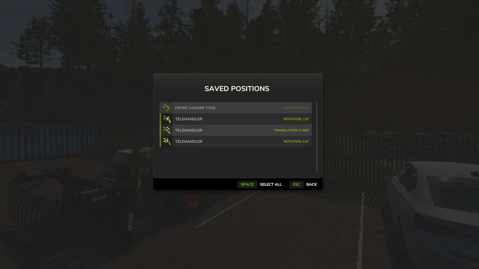 Zapisuj i przywracaj pozycje narzędzi w ładowarkach, koparkach i traktorach. Łatwo zarządzaj stanem roboczym swojego sprzętu, rejestrując i płynnie przywracając złożone konfiguracje narzędzi. Funkcje obejmują okno dialogowe zarządzania (LCTRL+Z), obsługę trybu wieloosobowego oraz niezależne sterowanie pojedynczym narzędziem (Z).