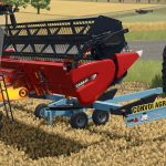 Przyczepa z obrotowym zespołem żniwnym Cochet umożliwia łatwy transport i montaż zespołu żniwnego kombajnu na drogach i polach.