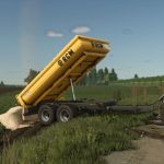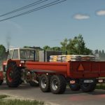 Przyczepa pełni funkcję wywrotki. Jest zaprojektowana specjalnie do koparek, ale może być również używana do transportu za pomocą zwykłego ciągnika.