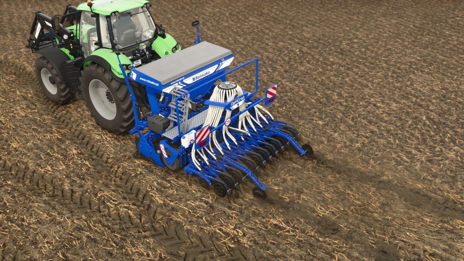 Rolmako OptiCrop to nowość z 2025 roku. Siewnik ten umożliwia jednoczesną uprawę i siew, gwarantując oszczędność czasu.