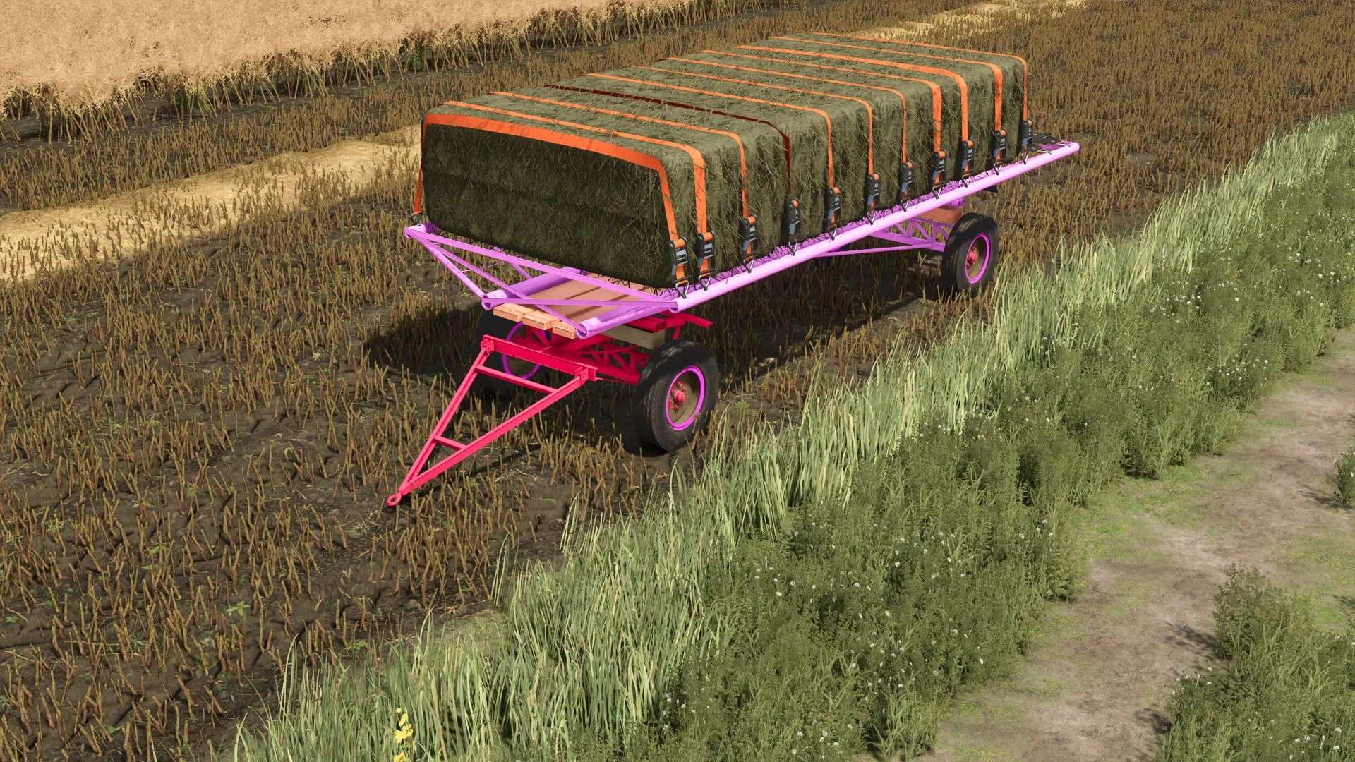 FS25 Rumuńska przyczepa do przewozu bel różowa v1.0.0.0