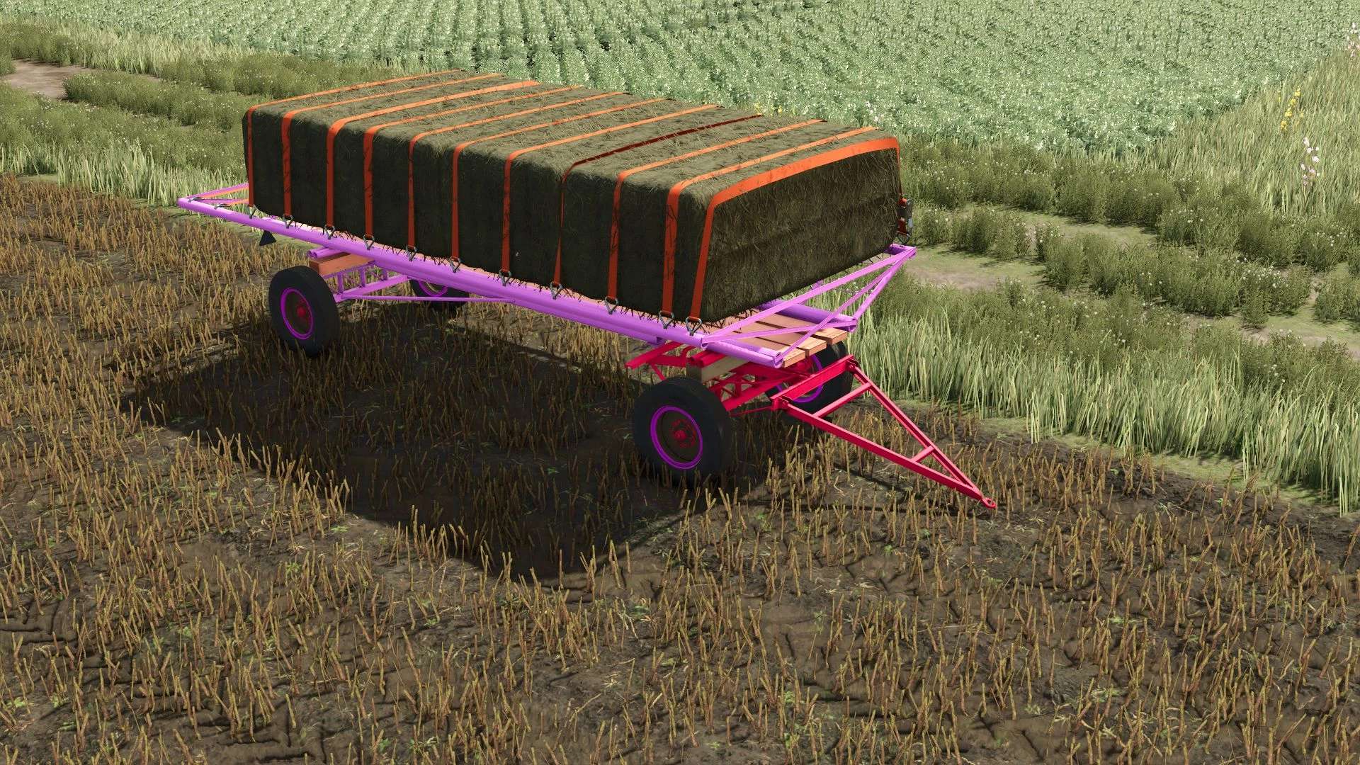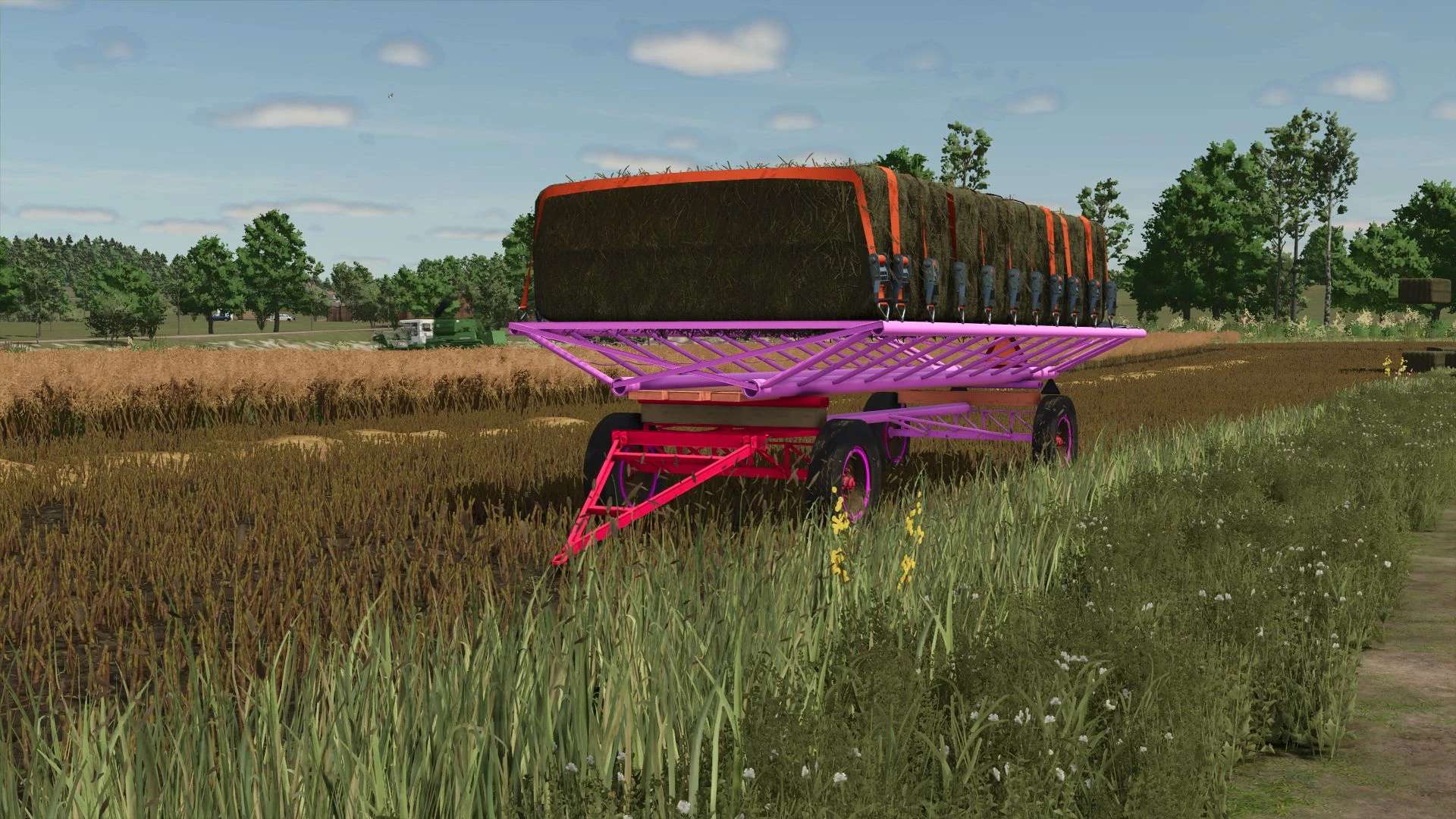 FS25 Rumuńska przyczepa do przewozu bel różowa v1.0.0.0