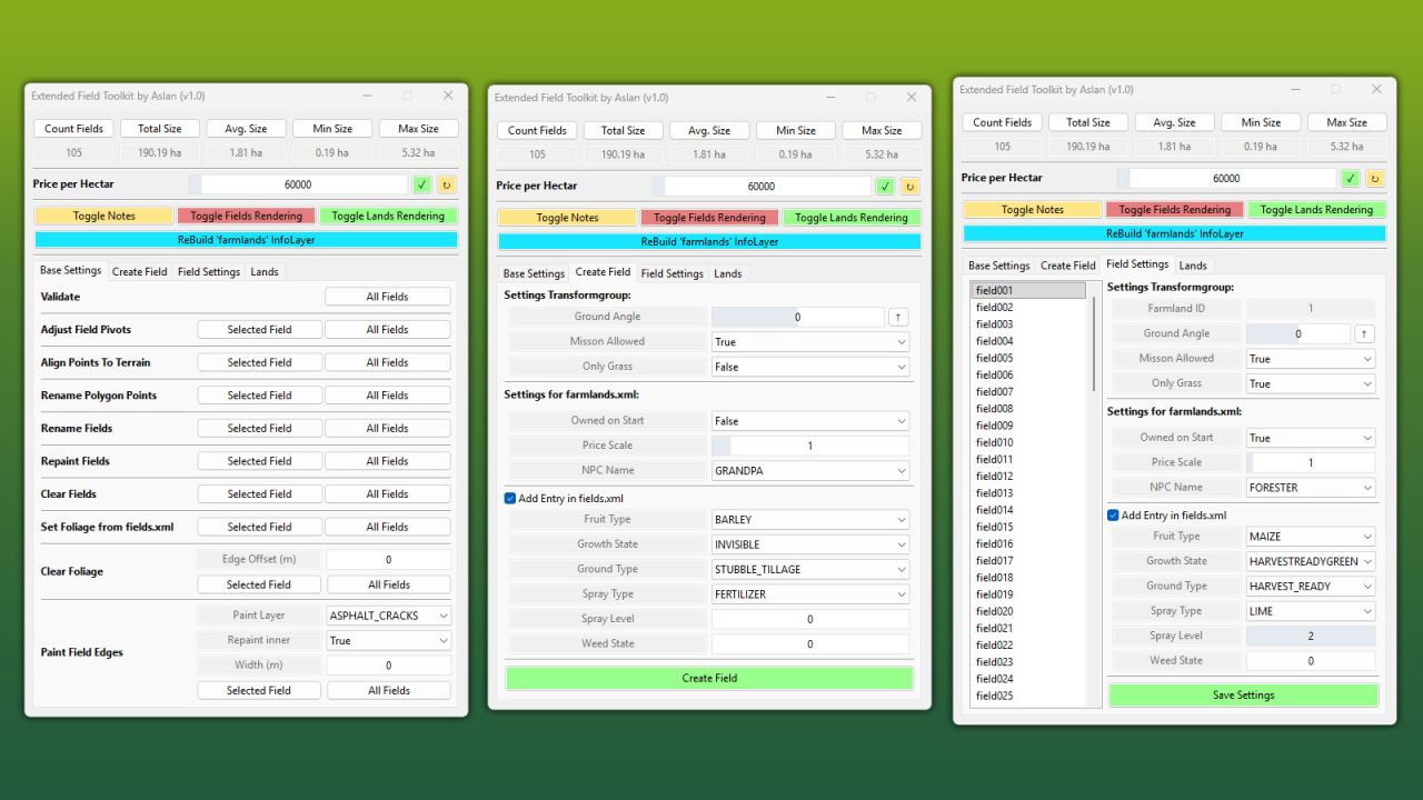 Extended FieldToolkit rozszerza standardowy zestaw narzędzi GIANTS FieldToolkit o szeroką gamę nowych funkcji i ulepszony widok debugowania, dzięki czemu tworzenie pól i zarządzanie nimi staje się znacznie łatwiejsze.