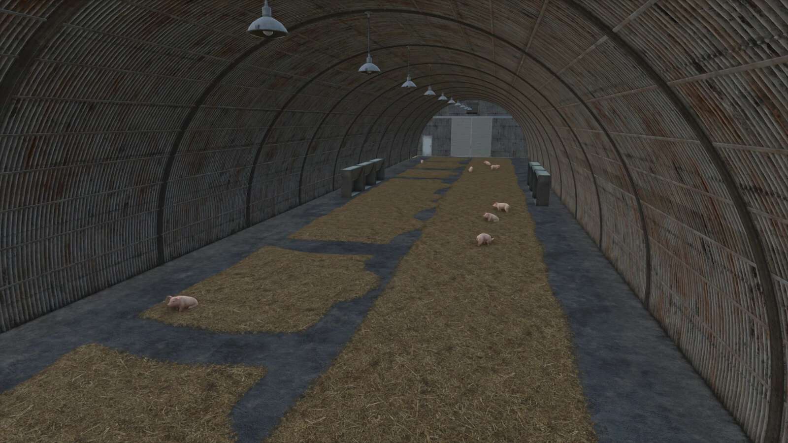 Chlew jest dostępny, można wjechać ciągnikiem. Można włączyć oświetlenie hali na potrzeby operacji nocnych.