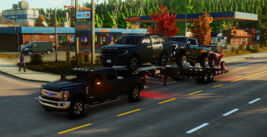 Prosty i czysty samochód dostawczy przeznaczony do przewożenia praktycznie wszystkiego — samochodów, ciężarówek, przyczep, quadów i wszystkiego, co chcesz na nim umieścić.