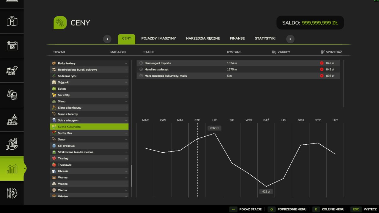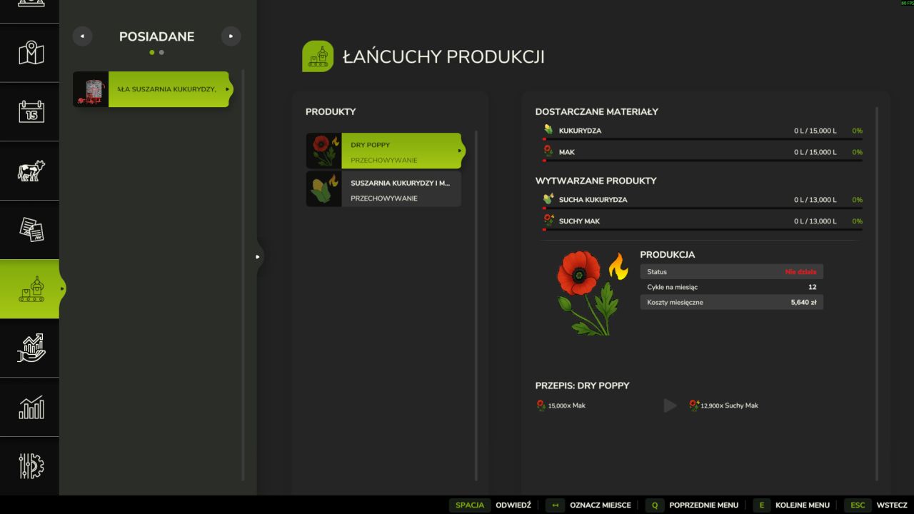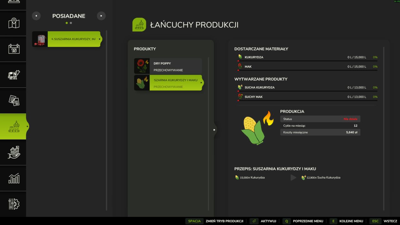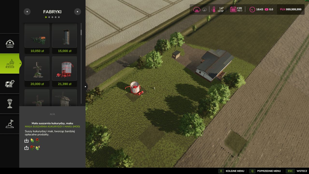 Możliwość suszenia kukurydzy i sprzedawania jej w sklepach istniejących w grze po wyższej cenie niż kukurydza z pola