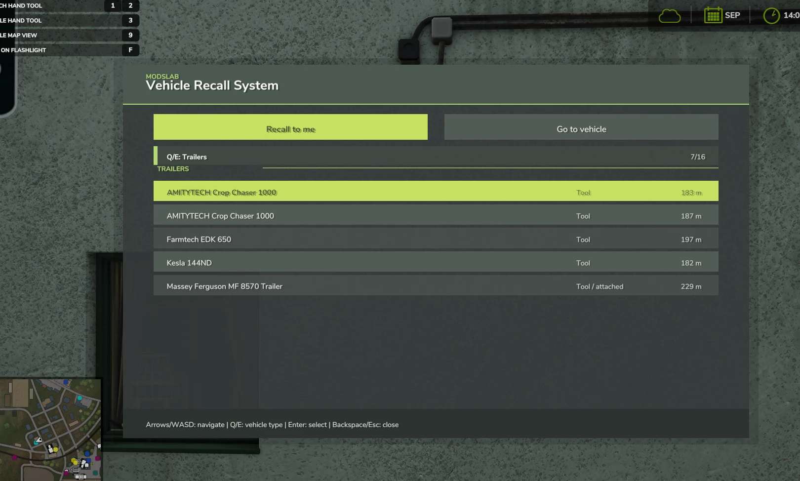 Vehicle Recall System to modyfikacja skryptu do Farming Simulator 25, która umożliwia szybkie przemieszczanie posiadanych pojazdów i narzędzi. Możesz przywołać swoje pojazdy do siebie lub teleportować swoją postać do wybranego pojazdu.