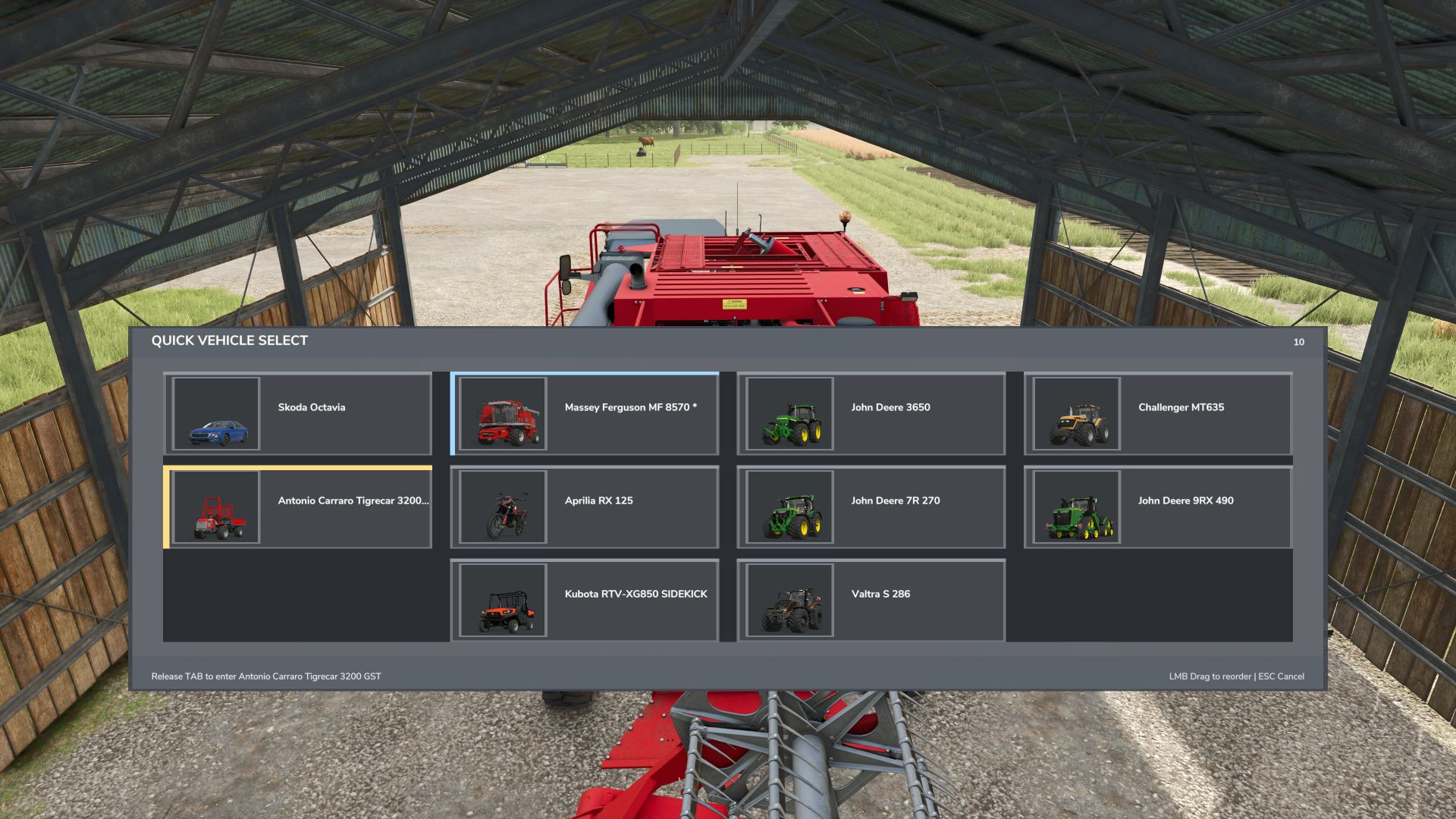 FS25 Szybki wybór pojazdu V1.2.0.4