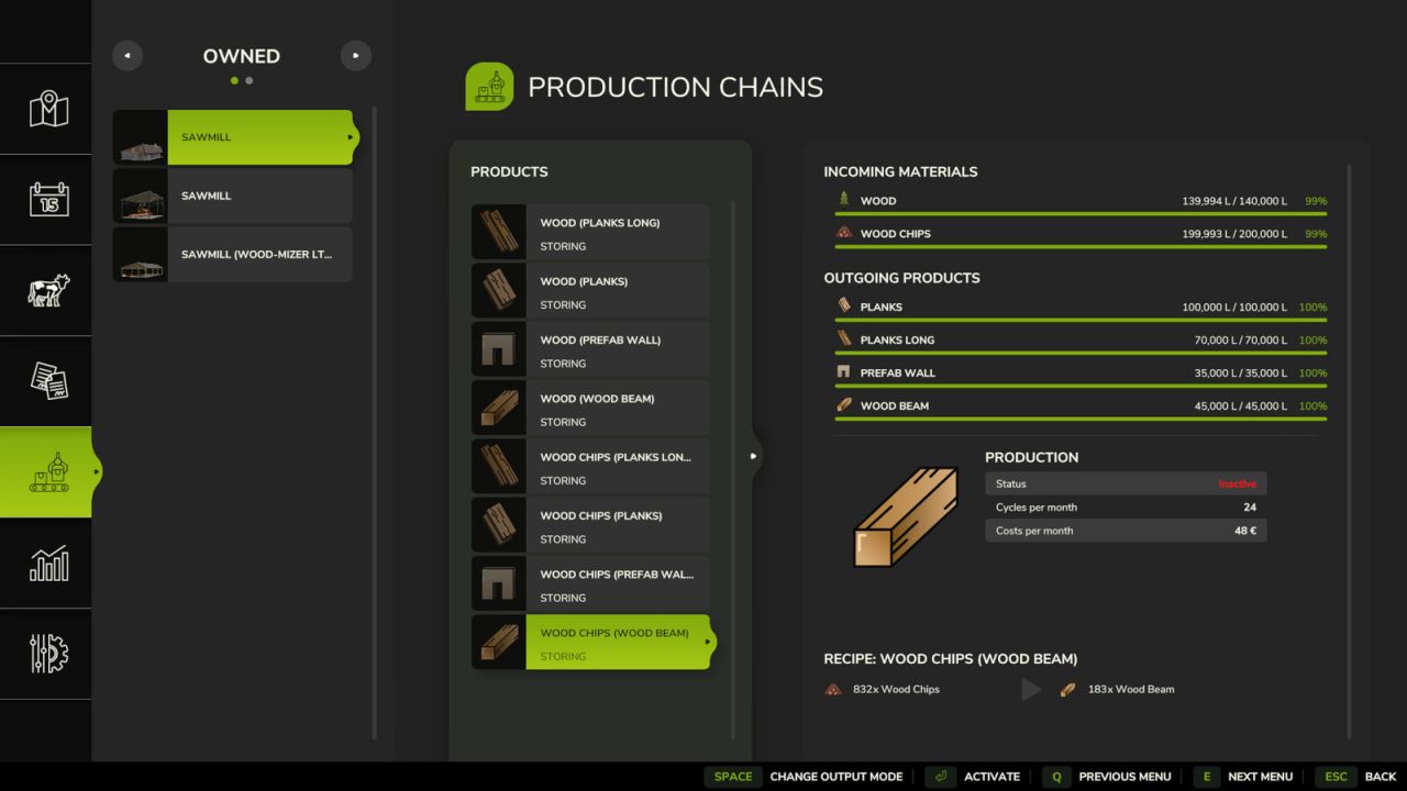 Wszystkie tartaki mogą również przyjmować kłody drzewne jako dane wejściowe, tak jak domyślnie.