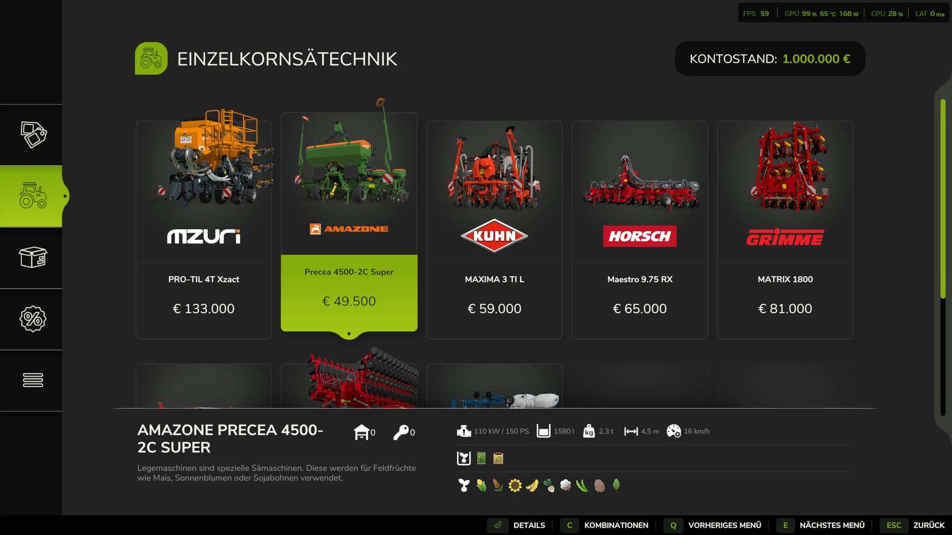 Ziemniaki można teraz sadzić przy użyciu wszystkich precyzyjnych siewników i siewników w grze, w których jako typ uprawy nasion wybrano „Kategorie”.
