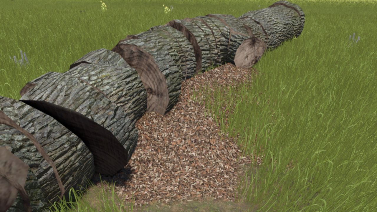 Ten mod dodaje realistyczne trociny (drobne wióry drewniane) powstające podczas ścinania drzew piłą łańcuchową.