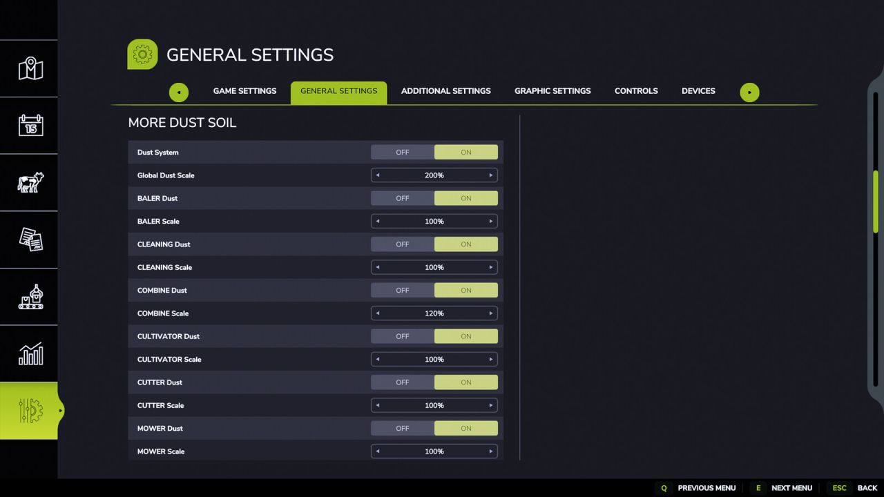 FS25 Więcej ustawień pyłu i gleby V1.0.0.0